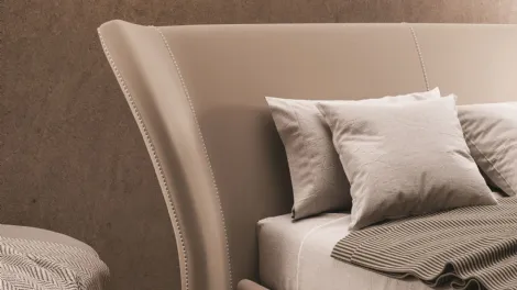 Letto moderno con importante testiera e giroletto alto imbottito. Disponibile nella pratica versione con box contenitore.