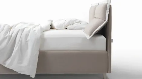 Letto contenitore imbottito dalle linee moderne elegante, impreziosito tanto dall’imbottitura a trapunta della testiera quanto dai volant che la incorniciano.