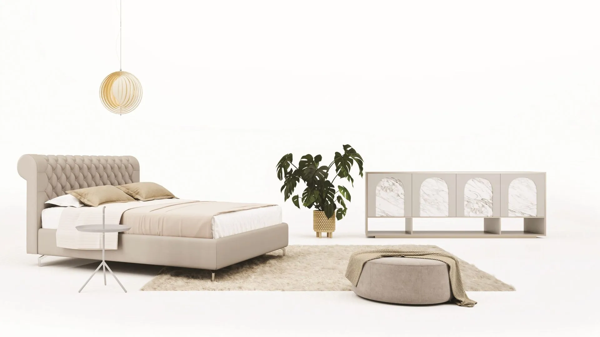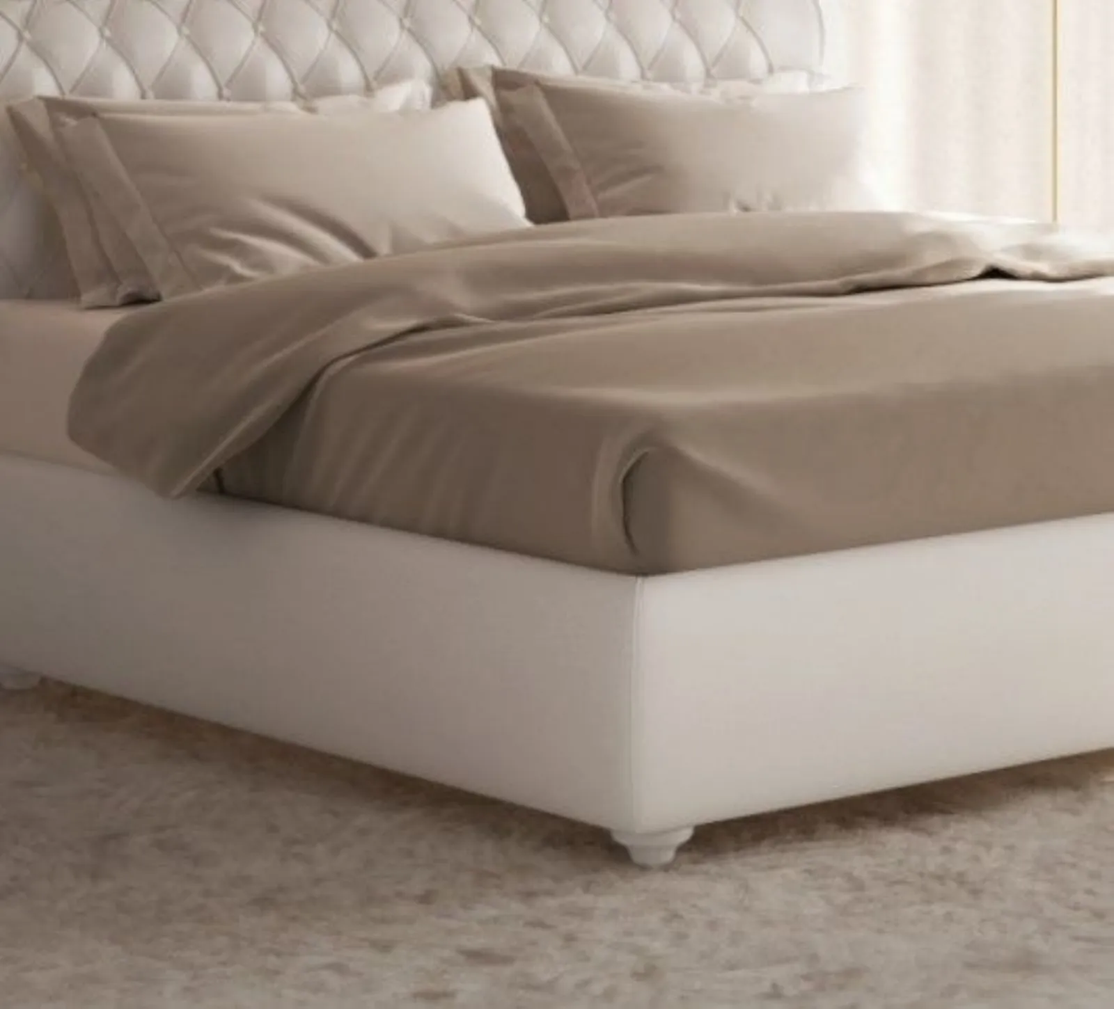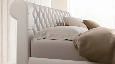 Letto dalle linee contemporanee ma tradizionali, impreziosito dall'elegante testiera trapuntata. Possibilità di mantovana per il giroletto.